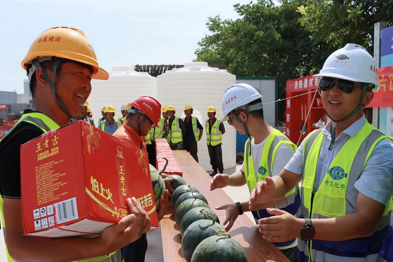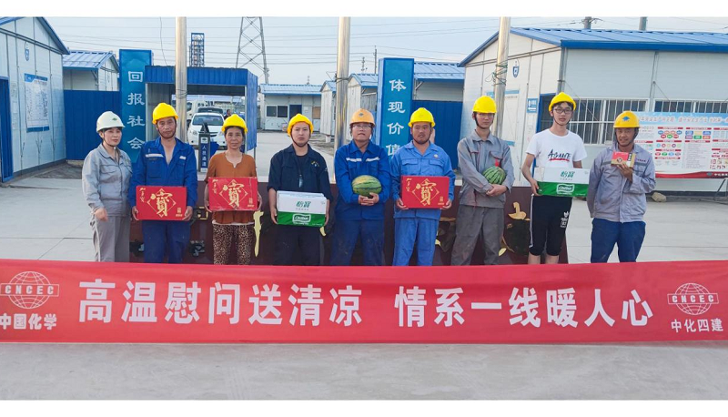 7月15日,東北公司在滄州旭陽(yáng)化工項(xiàng)目組織開(kāi)展“高溫慰問(wèn)送清涼、情系一線暖人心”活動(dòng),為一線職工送去西瓜、涼茶、藿香正氣水等防暑降溫物品,并叮囑做好防暑降溫工作,預(yù)防各類事故發(fā)生,為項(xiàng)目竣工投產(chǎn)作貢獻(xiàn)。
