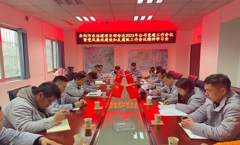 2月13日上午,岳陽污水系統(tǒng)綜合治理項目部召開專題會議,傳達學(xué)習(xí)集團公司、公司2023年黨建工作會暨黨風廉政建設(shè)和反腐敗工作會議精神。