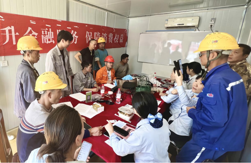為切實保障廣大農民工的合法權益,10月16日,中南公司主動與中國建設銀行岳陽珍珠山支行對接,為施工在云溪管廊現場一線的農民工提供現場集中辦理工資卡服務,實現服務“零距離”。