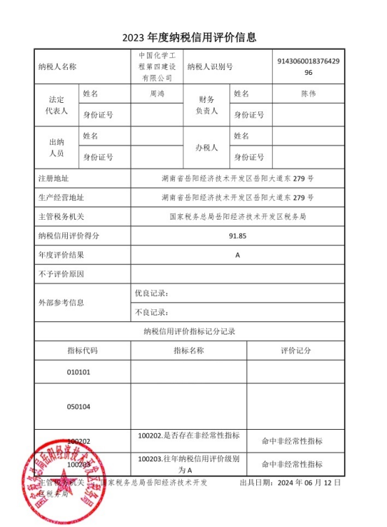 近日,國家稅務總局公布了2023年度企業納稅信用評價結果,公司再次獲評“納稅信用A級企業”。這是公司自2018年獲評“納稅信用A級企業”以來連續6年獲此殊榮。
