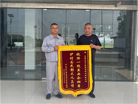 近日,君山區(qū)良心堡鎮(zhèn)望君洲村村民帶著“抗洪一線顯央企擔(dān)當,護村為民彰大義真情”的錦旗來到市政工程公司錢糧湖垸第三道防線工程項目部,對公司在團洲垸抗洪搶險關(guān)鍵時刻挺身而出,全力以赴、盡銳出戰(zhàn),奮力完成防汛搶建任務(wù)表示感謝。
