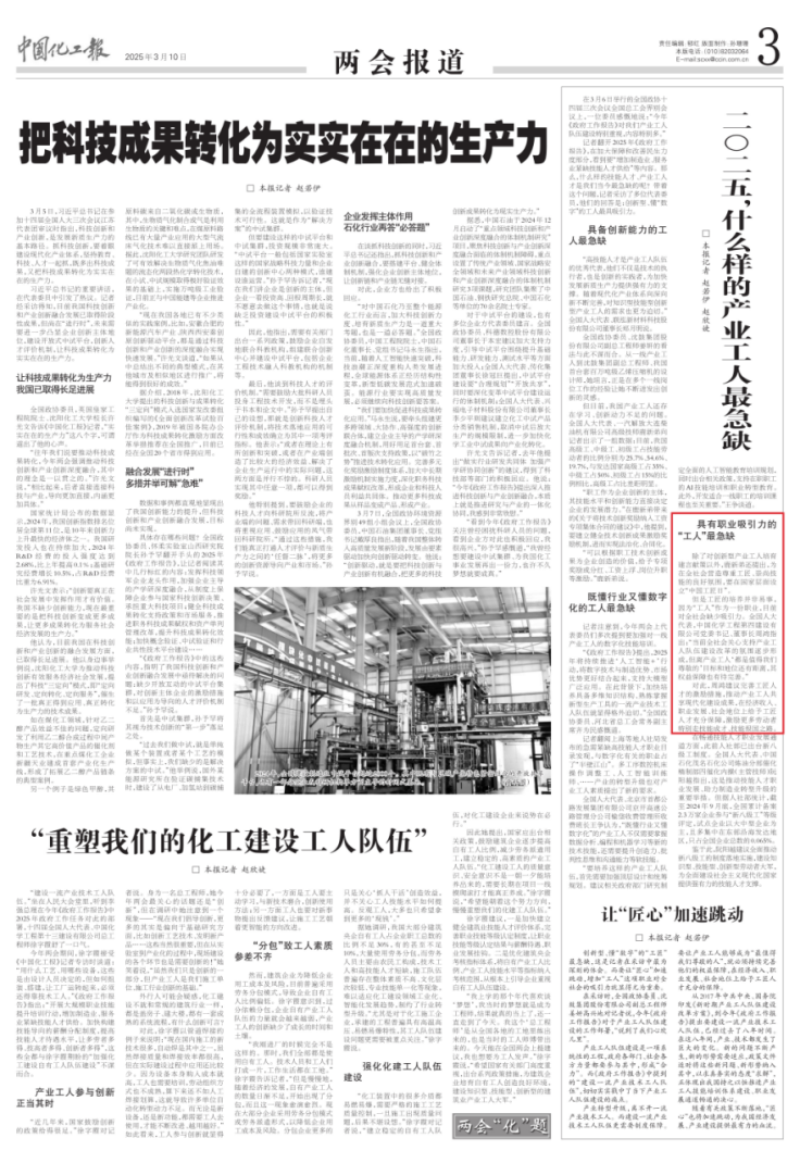 3月10日,中國化工報(bào)以《二O二五,什么樣的產(chǎn)業(yè)工人最急缺》為題報(bào)道周鴻的建議。