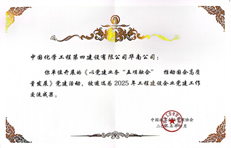 6月27日,中國施工企業管理協會2025年工程建設企業黨建工作成果交流會在京召開,會上發布2025年工程建設企業黨建工作成果推廣名單。由中國化學四化建華南公司申報的《以黨建業務“五項融合” 推動國企高質量發展》黨建項目案例從全國1000余項申報案例中脫穎而出,成功入選。這也是四化建參加中國施工企業管理協會開展的工程建設企業黨建工作典型案例征集活動以來,連續五年榜上有名。