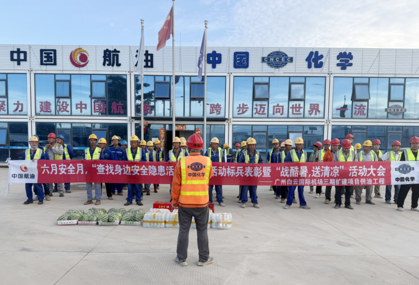 六月的廣州驕陽似火,廣州白云國際機場擴建工程現場卻涌動著比氣溫更熾熱的奮斗熱情。為深入貫徹全國第24個“安全生產月”活動主題,同時傳遞對一線建設者的關懷,6月30日,公司廣州白云國際機場項目部舉行“安全月查找身邊安全隱患活動表彰大會”,并在會后開展“夏送清涼”慰問活動,以“嚴管+厚愛”雙軌并行,為項目高質量發展注入強勁動力。