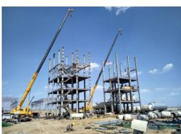 針對項目工期緊,任務(wù)量大,施工條件艱苦(缺水、風(fēng)沙較大)等情況,為保證施工的進度、質(zhì)量、安全和效益,該項目部從勞動力投入、材料和機具設(shè)備的配置及夜間趕工等方面作了詳細計劃和部署。在保證施工質(zhì)量和安全的前提下,夜間施工安排電工跟班,隨時排除現(xiàn)場電力故障,合理安排夜間施工工序和作業(yè)內(nèi)容?,F(xiàn)場人員發(fā)揚“五加二”、“白加黑”的苦干精神,采取加班延點或倒班制,想方設(shè)法加快施工進度。由于現(xiàn)階段該設(shè)備安裝主要為拆遷后的材料及設(shè)備,現(xiàn)場急需對其進行分類組裝。施工班組利用晚上加班對拆遷的材料和設(shè)備進行分類,白天照樣進行吊裝焊接作業(yè),既保證了施工進度,又確保了焊接質(zhì)量,獲得了業(yè)主的認可及贊許,為分公司承建寧夏得中化學(xué)二期頗大的施工項目創(chuàng)造了有利條件。(圖為2-甲基吡啶裝置儲罐吊裝作業(yè)。)
