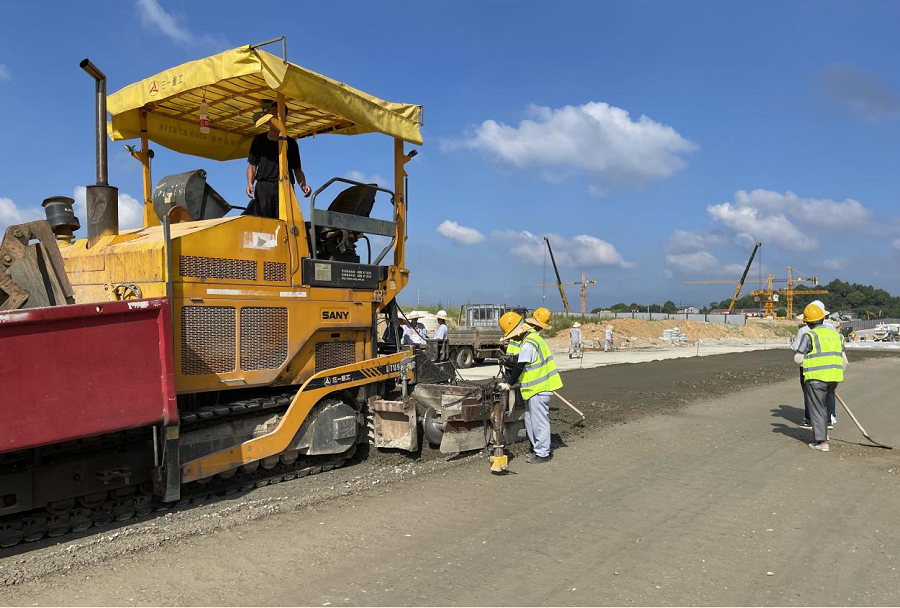 激情七月,赤日當空,建筑工程分公司新華路項目部全體員工頂高溫、戰酷暑,項目施工現場隨處可見火熱的建設場景和勞動奮斗的大干場面,測量員的標尺反復精準的測量核驗,攤鋪機穩步持續地向前挺進,壓路機穿梭不停地來回碾壓……新華路項目圍繞“中科路至長嶺頭路段通車”的目標,全面掀起了施工大干熱潮。