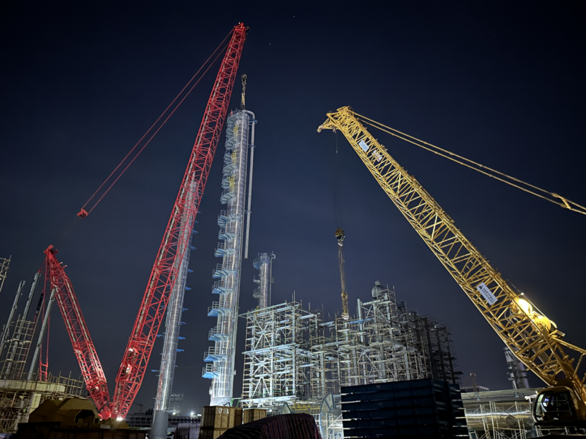 該粗苯加氫裝置是宏坤集團(tuán)首套核心裝置,自2023年7月開工以來(lái),項(xiàng)目部周密計(jì)劃,科學(xué)組織,精益管理,穩(wěn)步推進(jìn)施工生產(chǎn)。在項(xiàng)目攻堅(jiān)沖刺階段,項(xiàng)目部以黨建為引領(lǐng),創(chuàng)新推行“黨建+工程”融合機(jī)制,通過(guò)設(shè)立4個(gè)黨員責(zé)任區(qū)、3個(gè)黨員先鋒崗,組建2支黨員突擊隊(duì)、1支青年突擊隊(duì),領(lǐng)銜開展“大干80天 沖刺關(guān)鍵點(diǎn)”活動(dòng),全力破解項(xiàng)目堵點(diǎn)難點(diǎn)問題,成功攻克復(fù)雜地質(zhì)、大跨度鋼結(jié)構(gòu)吊裝精度控制難等技術(shù)難題,圓滿實(shí)現(xiàn)大干80天目標(biāo),確保項(xiàng)目按期中交,將組織優(yōu)勢(shì)切實(shí)轉(zhuǎn)化為技術(shù)突破動(dòng)能。