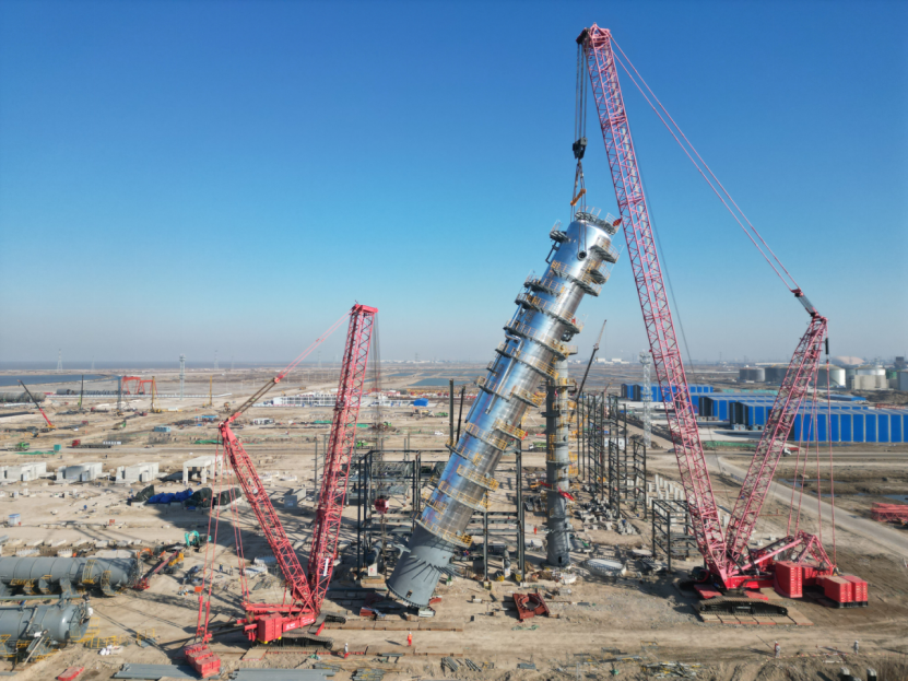 該項(xiàng)目位于河北滄州渤海新區(qū)港城區(qū)石化產(chǎn)業(yè)區(qū),自開(kāi)工建設(shè)以來(lái),項(xiàng)目部錨定“高標(biāo)準(zhǔn)、高質(zhì)量、高效率”履約目標(biāo)推進(jìn)工程建設(shè)。此次吊裝的分餾塔是項(xiàng)目核心關(guān)鍵設(shè)備,高61.6米、直徑6.4米,重274噸,具有吊裝難度大、技術(shù)要求高、安全風(fēng)險(xiǎn)高的特點(diǎn)。