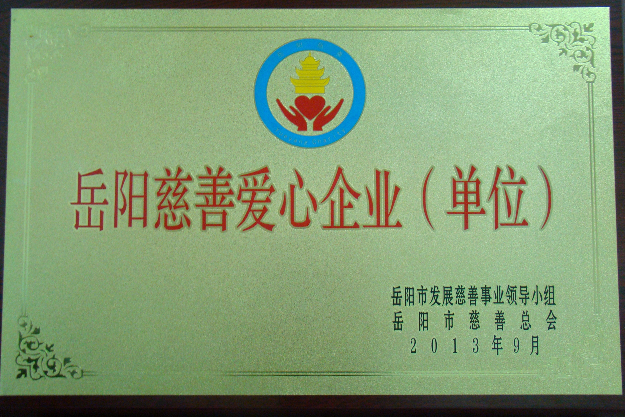 公司獲“岳陽市慈善愛心企業”榮譽稱號